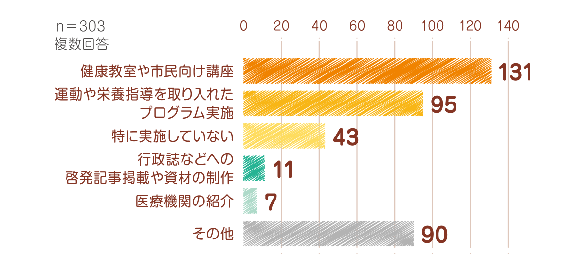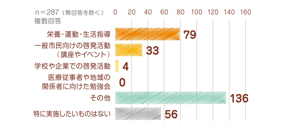 「その他」と回答した自治体に具体的な内容をヒアリングしたところ、「生活習慣に特化したプログラム実施」や「出張講座の実施」などが挙げられました。