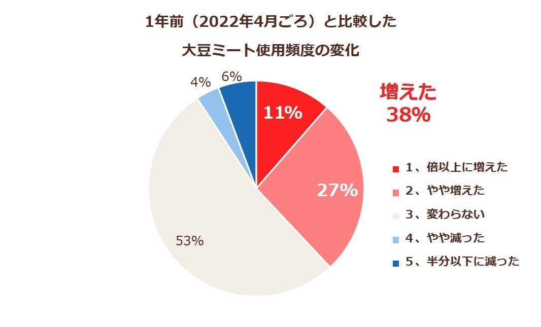 「肉の日に大豆ミートプロジェクト」、4月29日「肉の日」に「第3回大豆ミート食卓白書」を発表。38%が、1年前より使用頻度が「増えた」と回答。