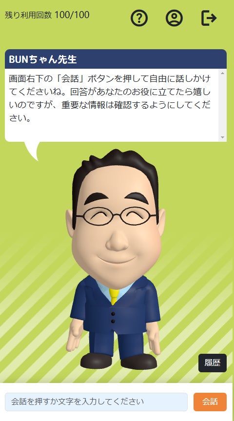 ユーザーが音声やテキストで質問をすると、BUNちゃん先生そっくりの声で回答します。まるで本人と直接会話しているような感覚を味わえます。