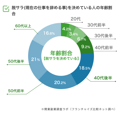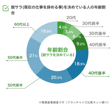 「開業副業調査ラボbyフランチャイズ比較.net」調査第2弾 ワークライフバランスより「収入重視」!脱サラを決意した人のうち75%は40代後半〜60代