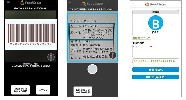 ▲スマホでバーコードや原材料名を撮影すると健康度判定が表示される