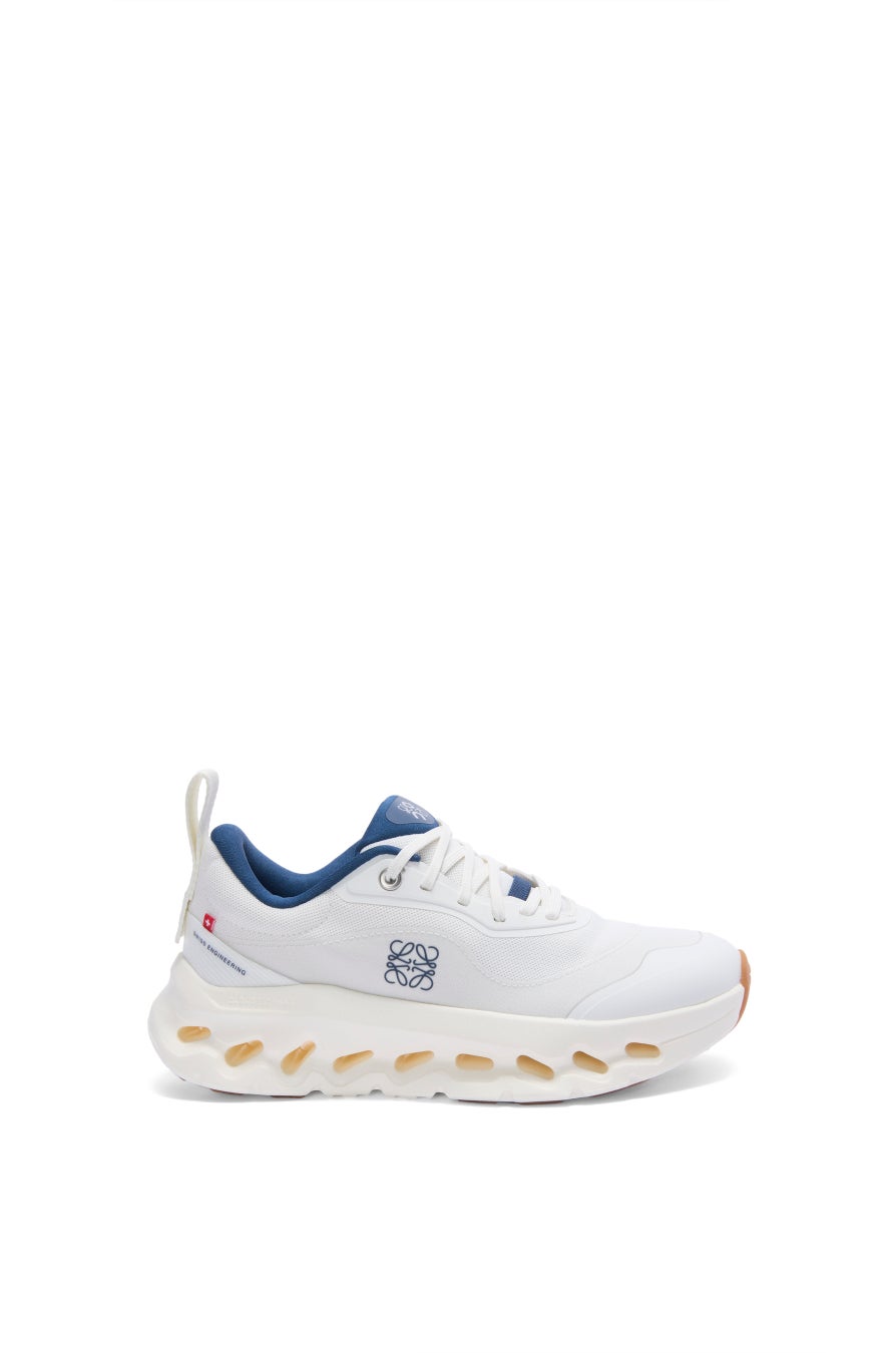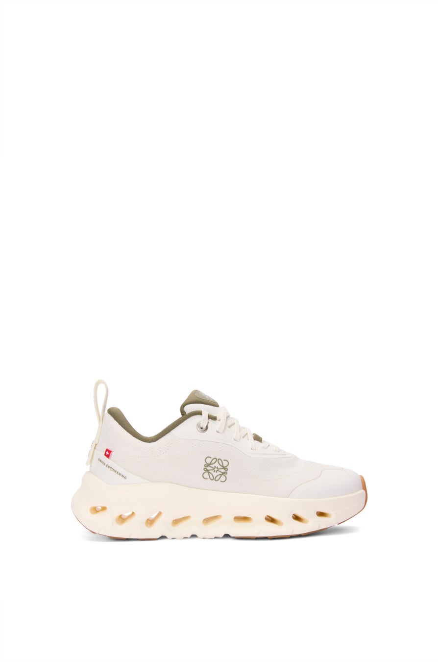 そのほか、アウトソールに新色を採用したタンホワイト/ガムとブラックホワイト/ガムも登場します。サイドにはロエベとOnのロゴがそれぞれ配され、Onの特徴的なレタリングの間にロエベのアナグラムからとった2つの「L」を収めたシルバーのジョイントロゴがタンの部分に施されています。