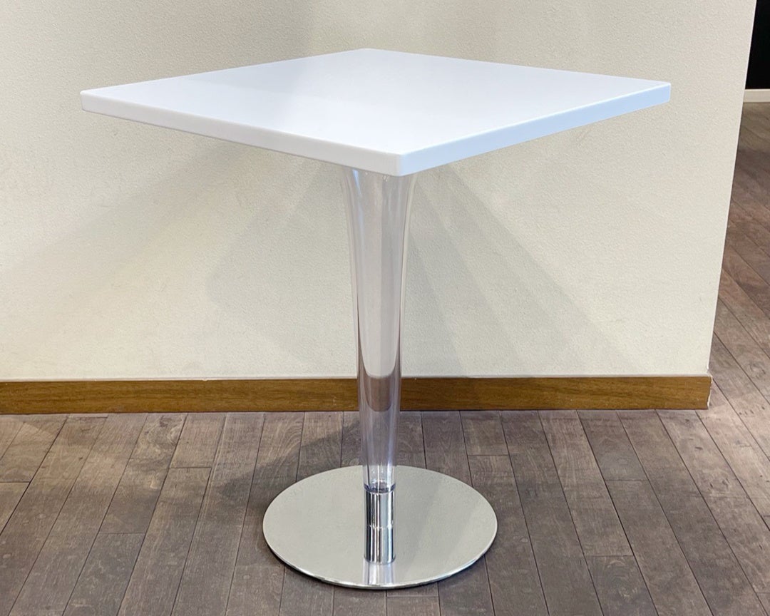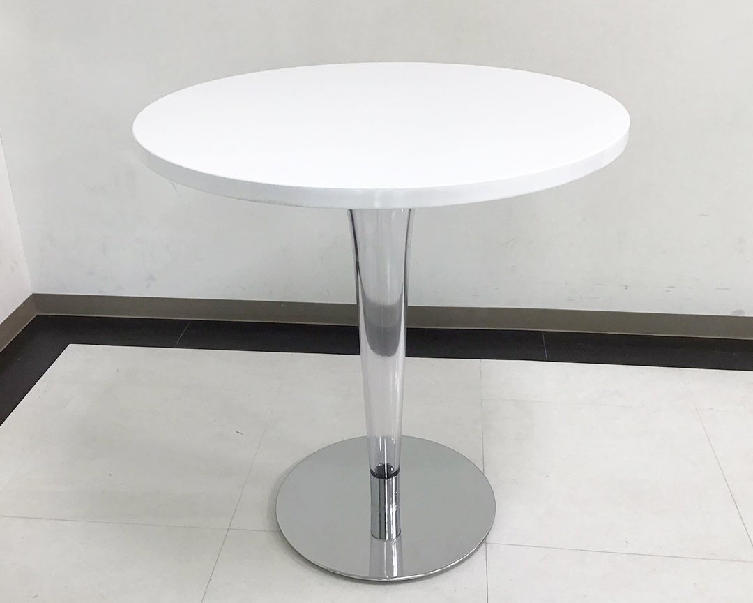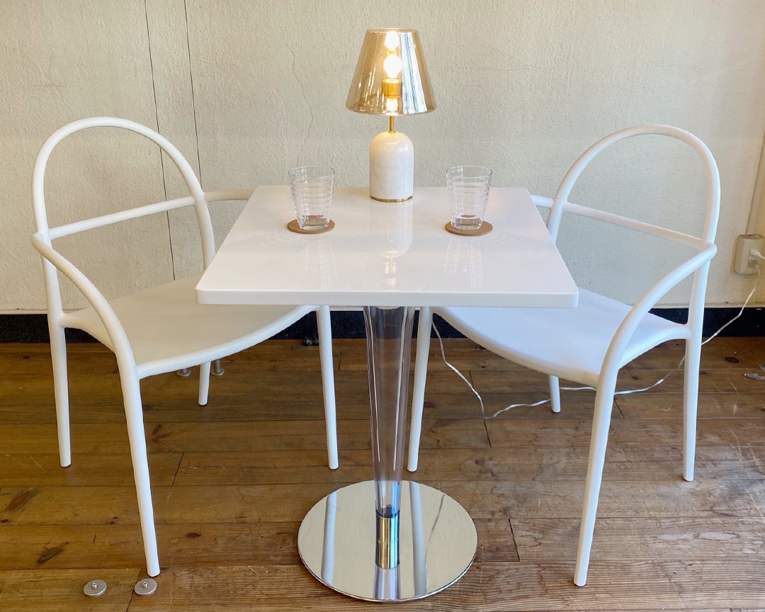 ホワイトと透明のシンプルな配色なのでさまざまなテイストになじみやすく、且つ一本足のカフェテーブルのような雰囲気とイタリアモダンなデザインの融合によりお部屋におしゃれな印象になります。