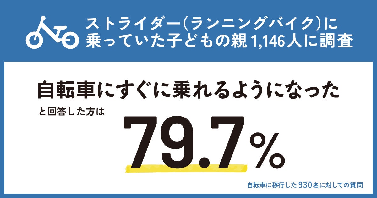 【ストライダー(ランニングバイク)に乗っていた子どもの親1,146人に調査】『自転車にすぐ乗れた』と回答した方は79.7%!さらに9割以上の方が子どもの体幹が鍛えられたと感じると回答しました。