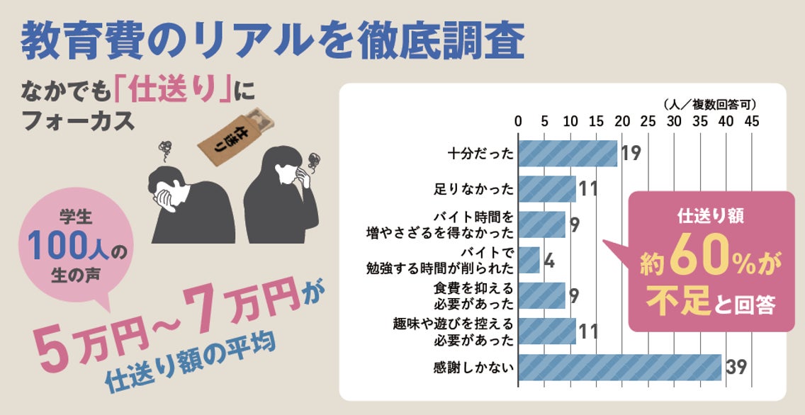 学生の約60%が「仕送り不足」。学費や家賃以外にもイメージしておきたいリアルな教育費【学生100人に独自アンケート調査】