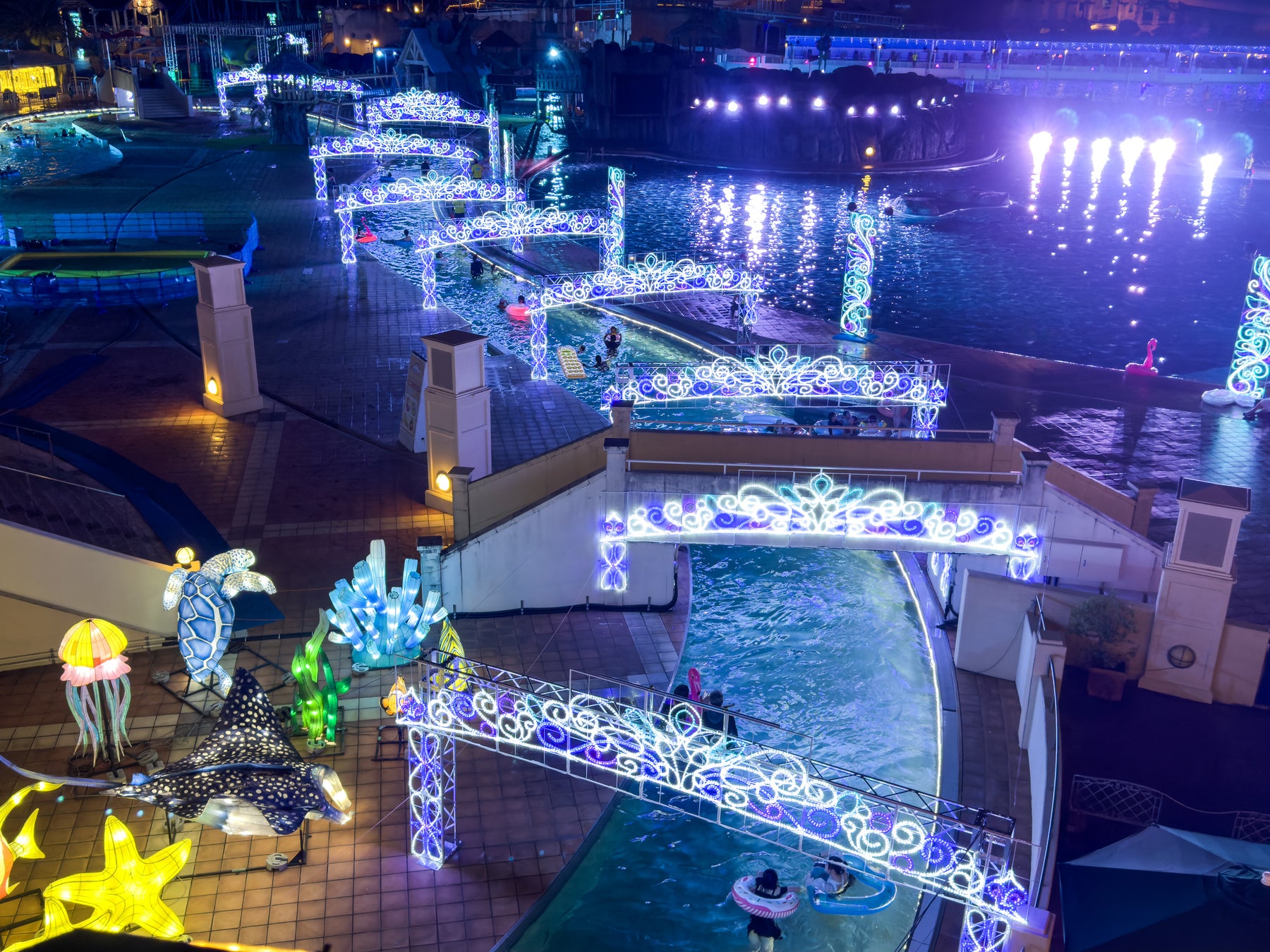 大人気のラグーナ ナイトプールは、昨年から夜も遊べるようになった「ウロボロスの河」をはじめ、4種類のプールがライトアップされ、ラグジュアリーな空間で日焼けや暑さを気にせずに楽しめます。13歳以上専用エリアでは、ラグジュアリーな空間でプールや写真撮影をゆったりとお楽しみいただけます。3つのファミリーエリアでは、幅広い年代でナイトプールをお楽しみいただけます。