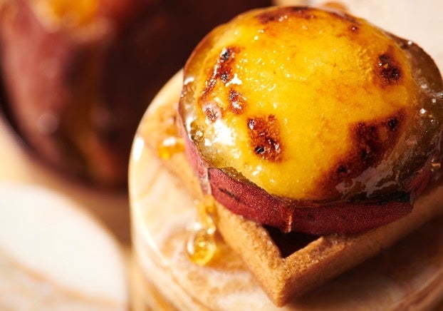 蜜がしたたるほど甘い壺焼き芋にたっぷりのカスタードクリームを詰め、ブリュレで仕上げました。壺焼き芋の甘さとカスタードのコク、キャラメリゼのほろ苦さが絡み合う贅沢食感をお届けしています。
