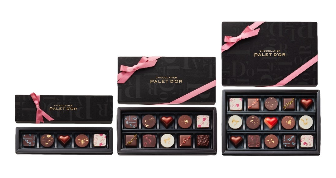 バレンタイン限定商品として、スペシャリテの「パレドオール」のほか、新作ショコラ等を詰め合わせたコレクションと、カラフルに仕上げた「パレドオール」の詰め合わせをご用意いたしました。