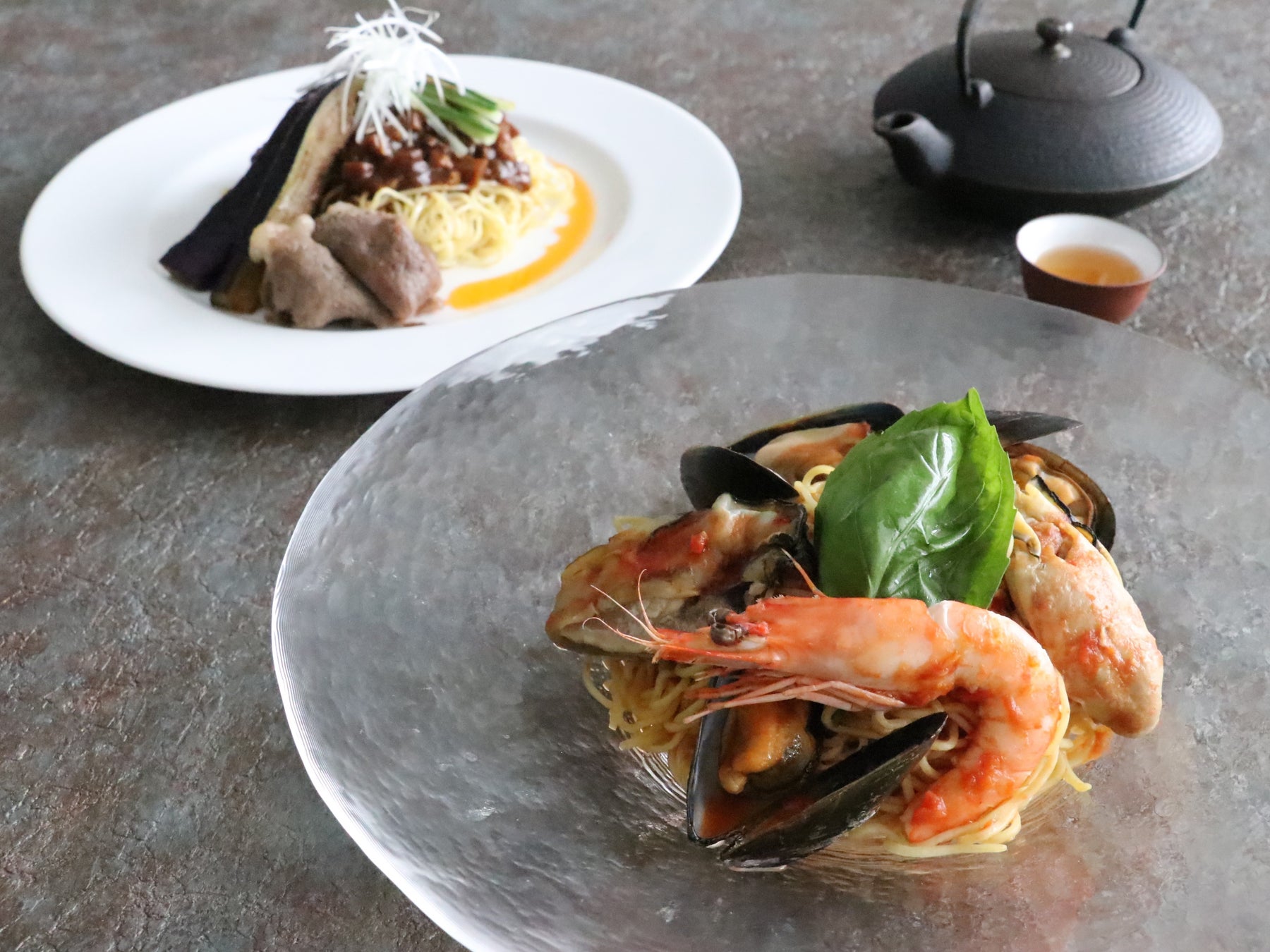 秋に愉しむホテルの冷やし麺「海鮮とトマトの冷製和え麺」「秋茄子と和牛サーロインのピリ辛和え麺」9月1日~10月31日