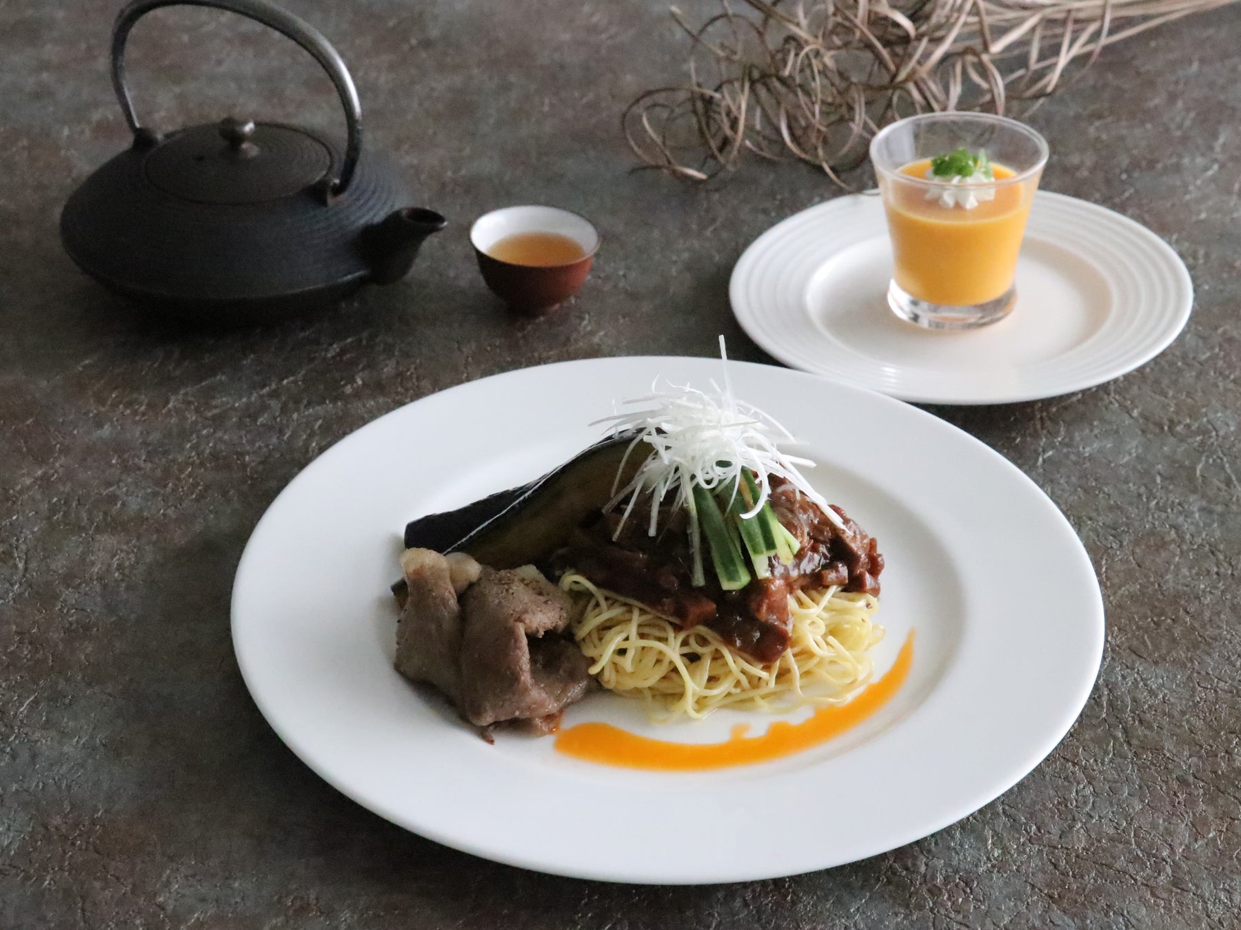 秋茄子と和牛サーロインのピリ辛和え麺 デザートセット 5,800円