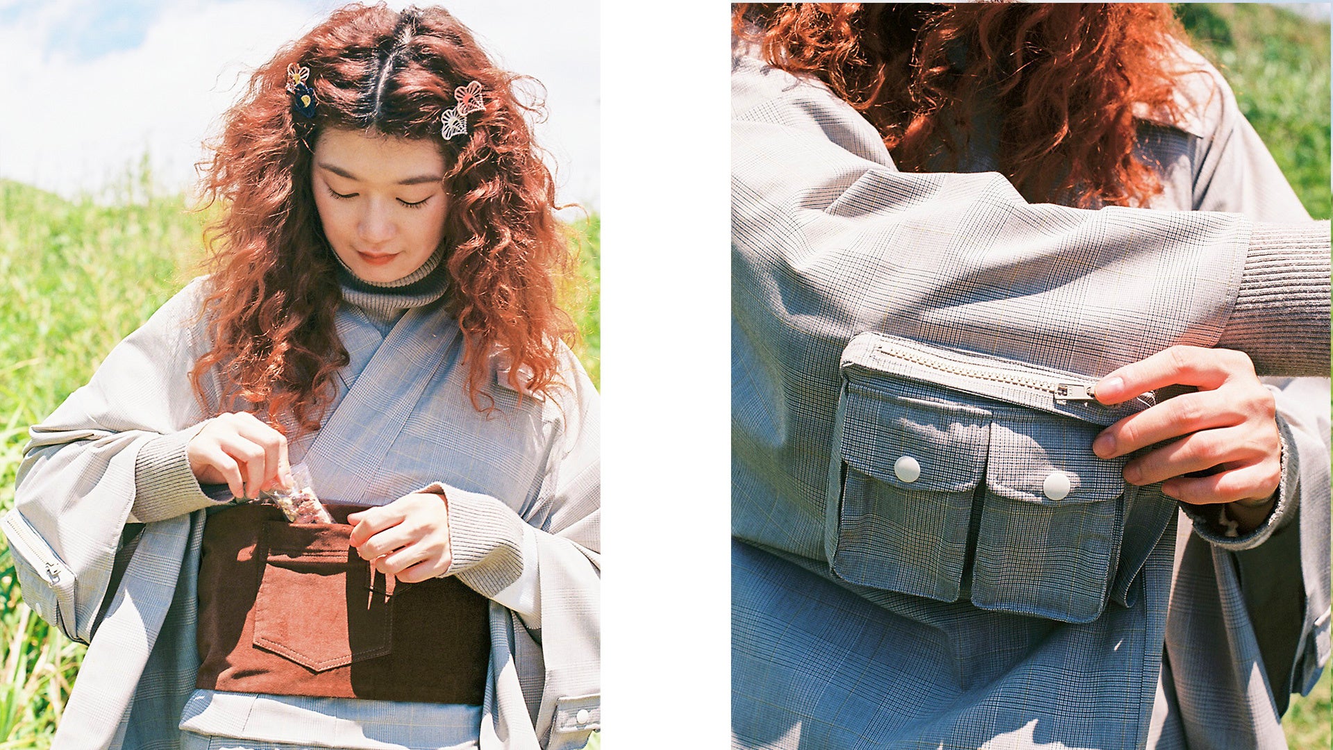 ポシェットひとつで気軽に出かけられるポケットきものの第二弾です。たくさんのポケットが備わっているという機能面に加え、スーツなどにも使用されているグレンチェックの生地を採用しているため、アウトドア以外でも着やすい上品な雰囲気のデザインになっています。さらに今作から羽織タイプも仲間入り。より幅広いシチュエーションでお楽しみいただけます。