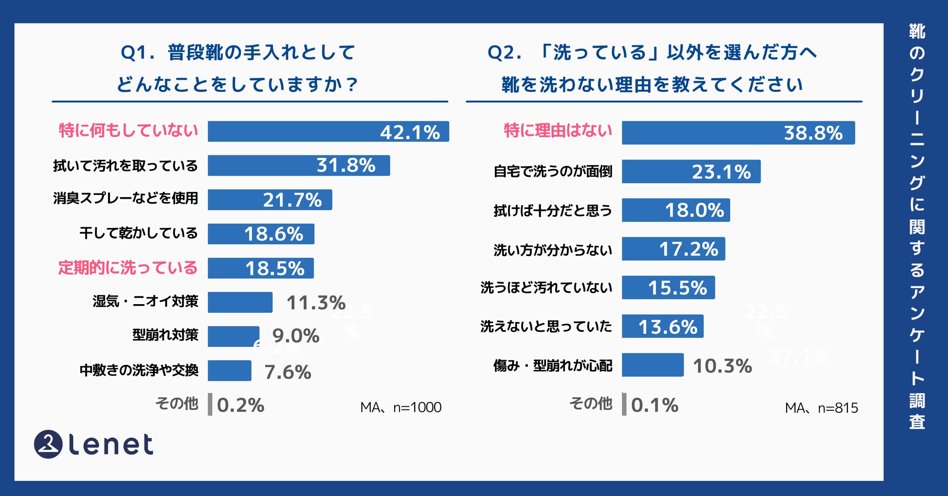 株式会社ホワイトプラス(本社 東京都品川区、代表取締役社長 井下孝之、以下「当社」)が提供する宅配クリーニング「Lenet(以下、リネット)」は、全国の20代〜60代の男女1000人を対象に、「靴のクリーニングに関するアンケート調査」を2025年10月にインターネットで実施しましたので、その結果をお知らせいたします。