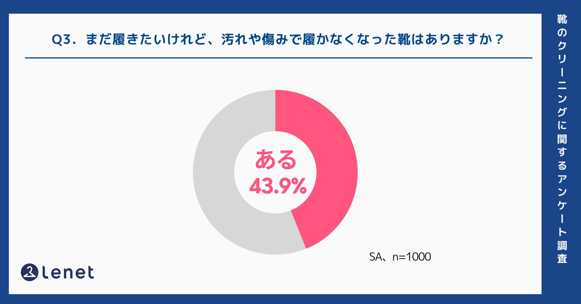 「まだ履きたいが、汚れや傷みで履けなくなった靴がある」人は43.9%