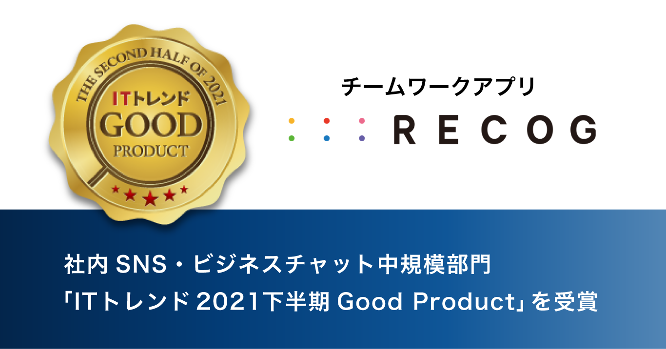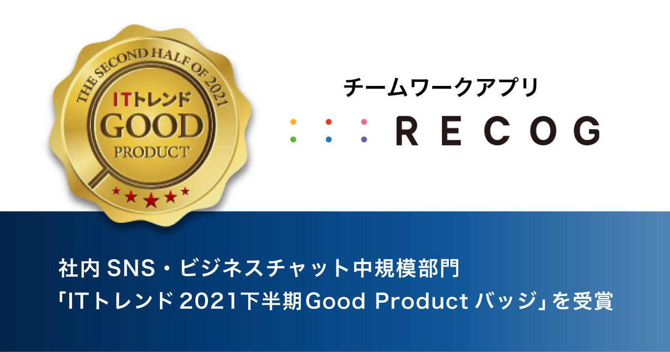 チームワークアプリ「RECOG」、「社内SNS・ビジネスチャット中規模部門」にて「ITトレンドGood Productバッジ」を受賞