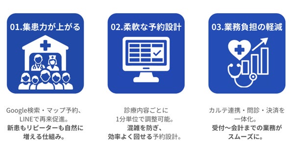 1.集患力が上がる:Google・マップ・LINE 導線で新患と再来を一括支援
