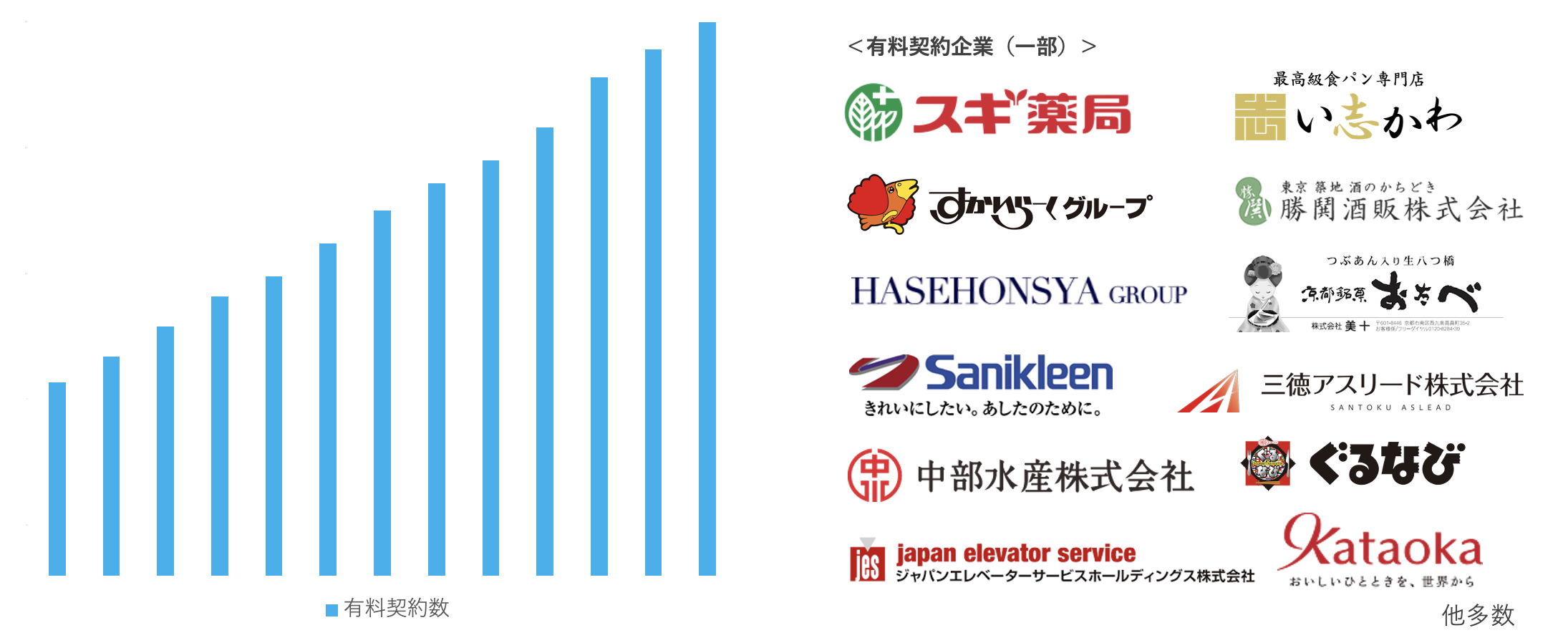 約25,000社がCO-NECTを通じて発注しており、製造業及び卸売業の1,485社に受注管理システムとしてご導入いただき、有料契約継続利用率は99%以上です。受発注システムCO-NECT内で流通した商材の流通総額は2019年4月のサービス開始から累計100億円を突破しており、2021年6月から2022年5月の直近1年間では78.5億円の流通総額となりました。中国電力株式会社と業務提携を締結することで、さらなる導入実績の拡大を目指します。