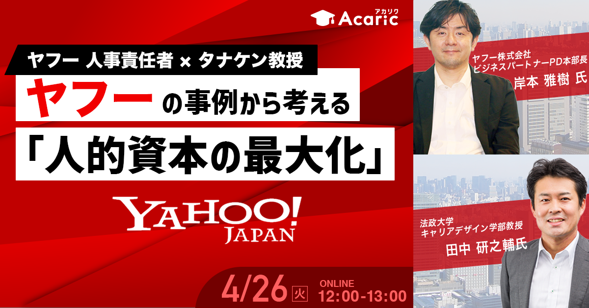 2022年4月26日(火)12:00 - 13:00 @オンライン【ヤフー株式会社 ビジネスパートナーPD本部長 岸本氏 × 法政大学キャリアデザイン学部教授 田中氏が登壇】
