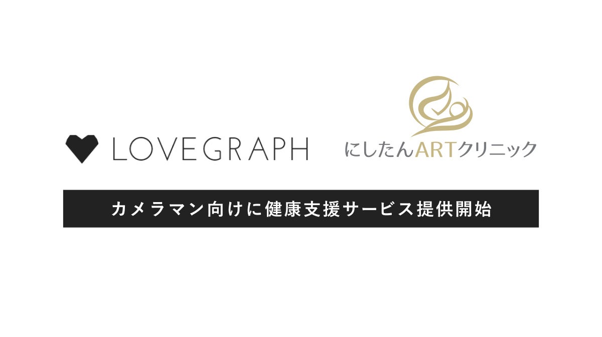 出張撮影サービス「Lovegraph(ラブグラフ)」を運営する株式会社ラブグラフ(本社:東京都渋谷区、代表取締役:駒下 純兵、本間達也、以下「ラブグラフ」)は、「にしたんARTクリニック」のメディカル支援サービスを行っているエクスコムグローバル株式会社(本社:東京都渋谷区、代表取締役社長:西村 誠司)と提携し、ラブグラフで活動するカメラマン向けに健康支援サービスを導入したことお知らせいたします。