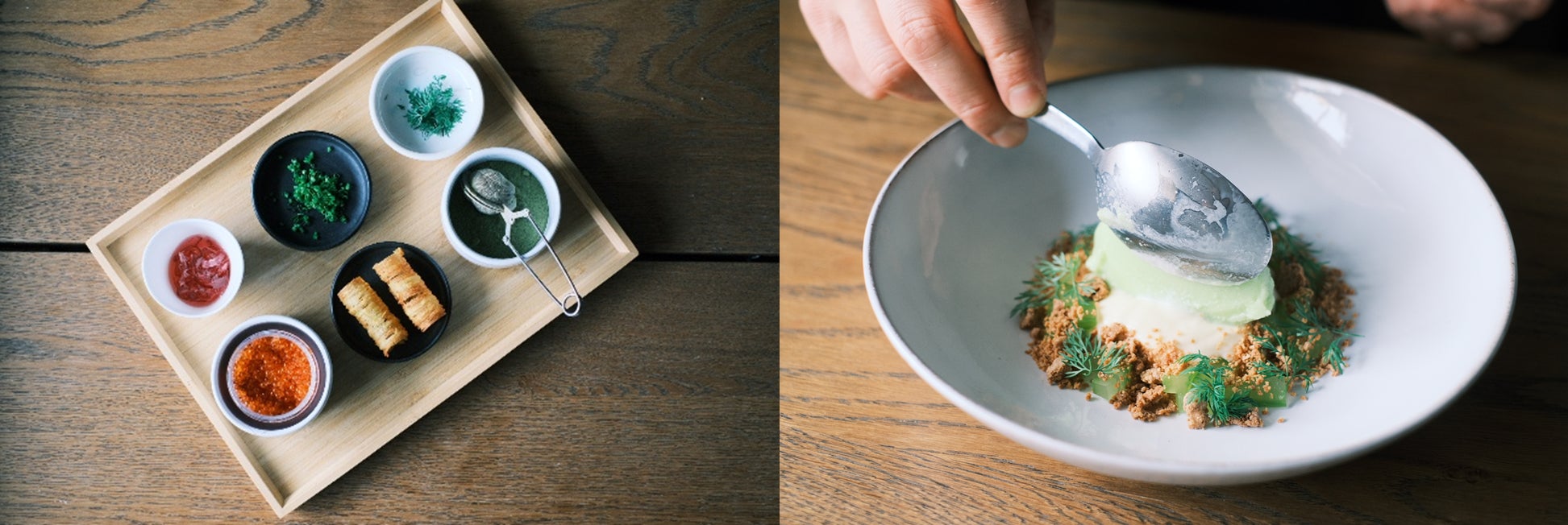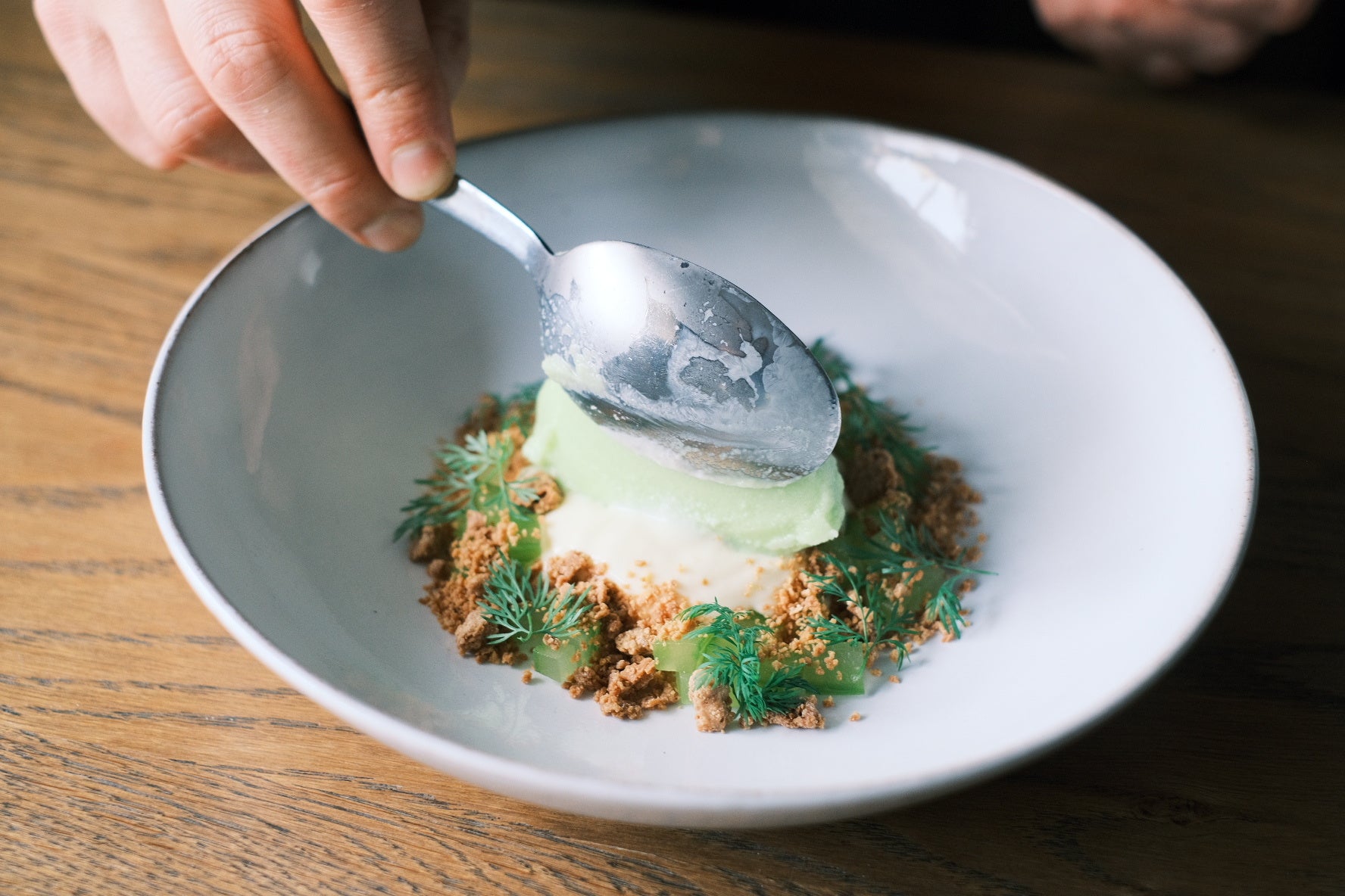 同店のテイスティングメニュー(6品)は季節ごとに変わり、初夏にはワイルドハーブ、ルバーブ、新じゃが、食用花、オーランド諸島産のアスパラガスなどが登場します。秋が近づくと、リンゴやプラム、きのこ、根菜が主役になります。「去年の夏はイチゴに夢中でした。毎日近くの農場から仕入れていて、人生で一番美味しいイチゴだと胸を張って言えます」と語ります。