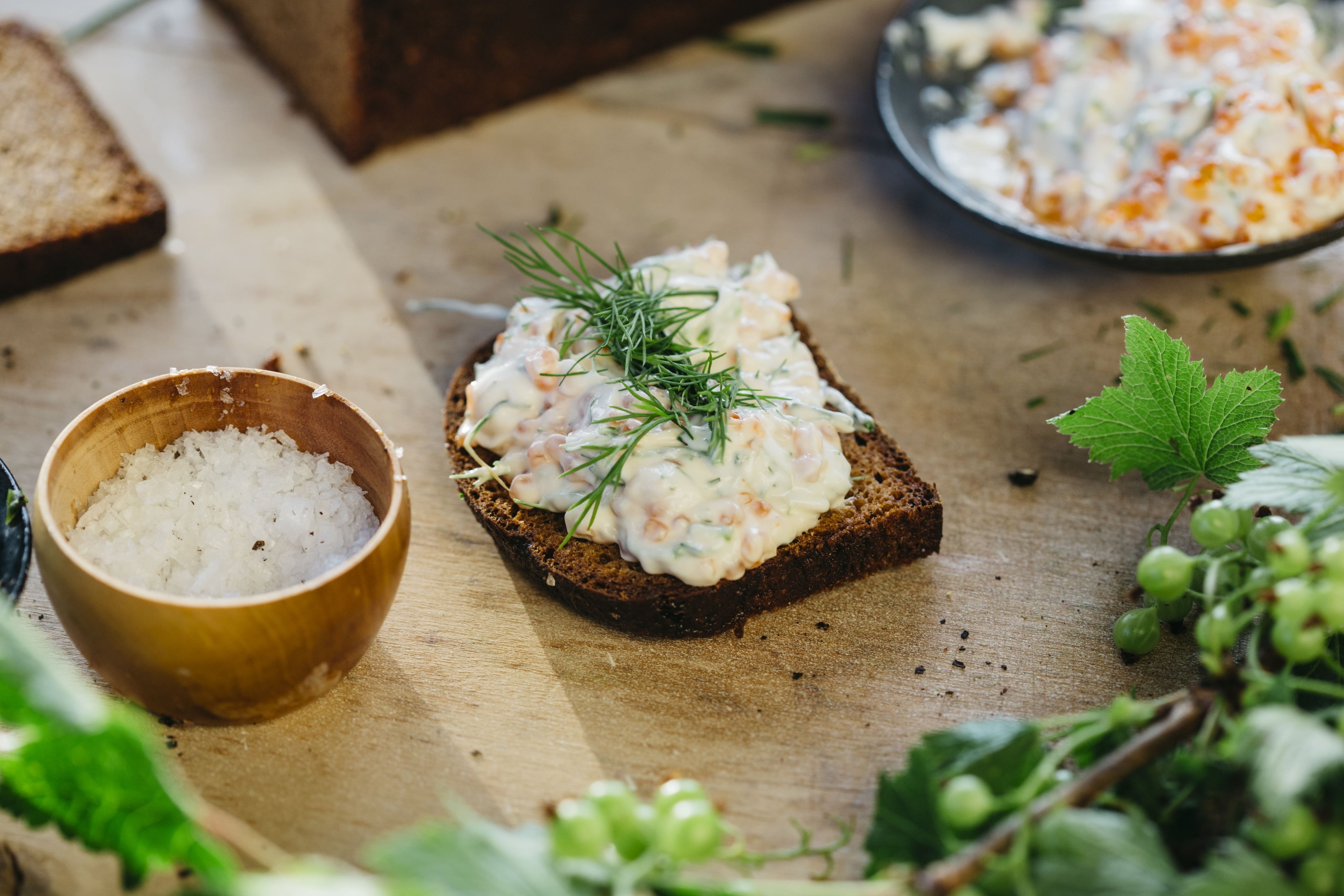 フィンランドの群島料理はシンプルながらも風味豊か。燻製魚やニシンは定番で、群島エリアのパンはモルトの香りがあり甘く、色も濃いのが特徴です。北欧の夏の定番“スカーゲン”(エビの前菜)との相性も抜群です。「フィンランドを訪れるなら、新じゃがにチャイブとサワークリームを添えて、ニシンやスモークトラウトと一緒に食べてみてください。僕のお気に入りは、群島エリアのパンに焦がしバターをのせた一品。ナッツのような香ばしさとキャラメルのような甘みがたまりません」と話します。