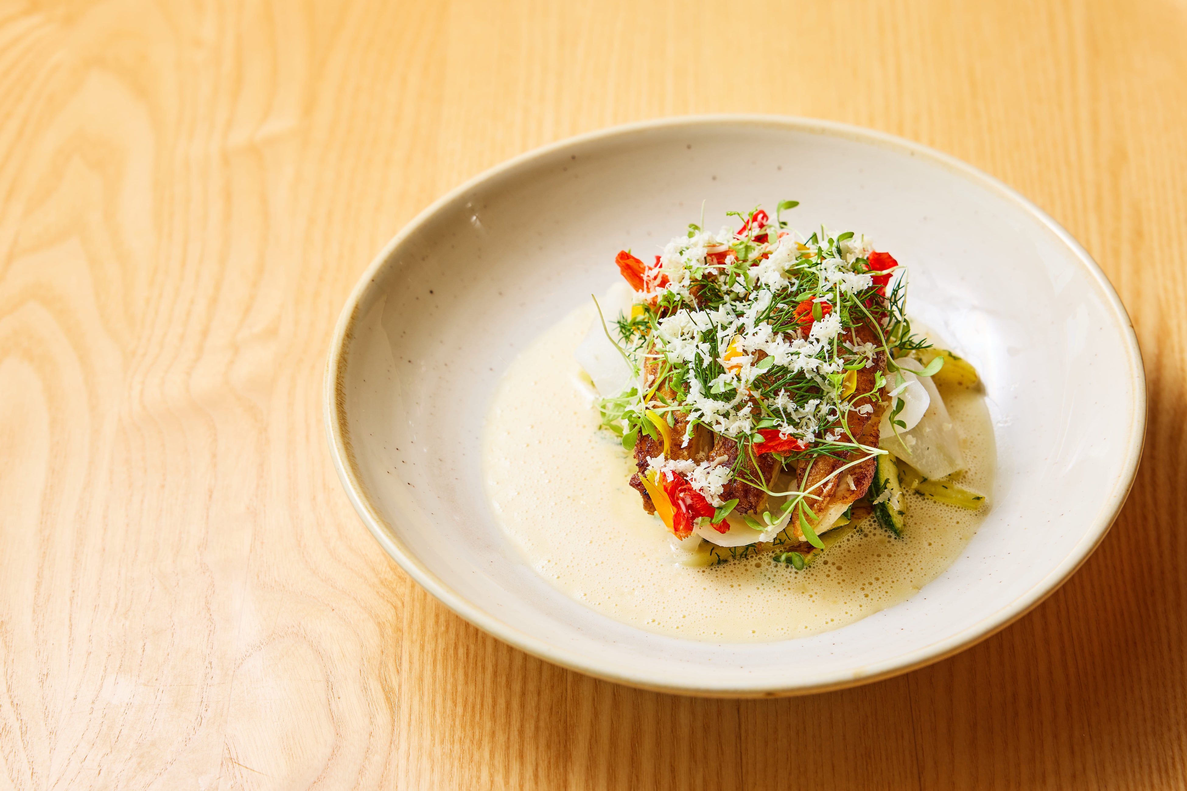 トゥルク群島エリアに位置するKorpoは、訪れるとまるで時が止まったかのような感覚を覚える場所です。一方、ウィリアム氏の料理は非常に現代的で、「Back Pocket」という店名が示すとおり、隠れ家のような空間でサプライズに満ちたひと皿が楽しめます。「僕たちの料理は遊び心があって、伝統にとらわれすぎていません。地元の食材を使いながら、アジア、特に日本の影響を取り入れるのが好きなんです。日本ならではの“うま味”と北欧料理のクリーミーさの組み合わせがポイントです」とウィリアム氏は語ります。