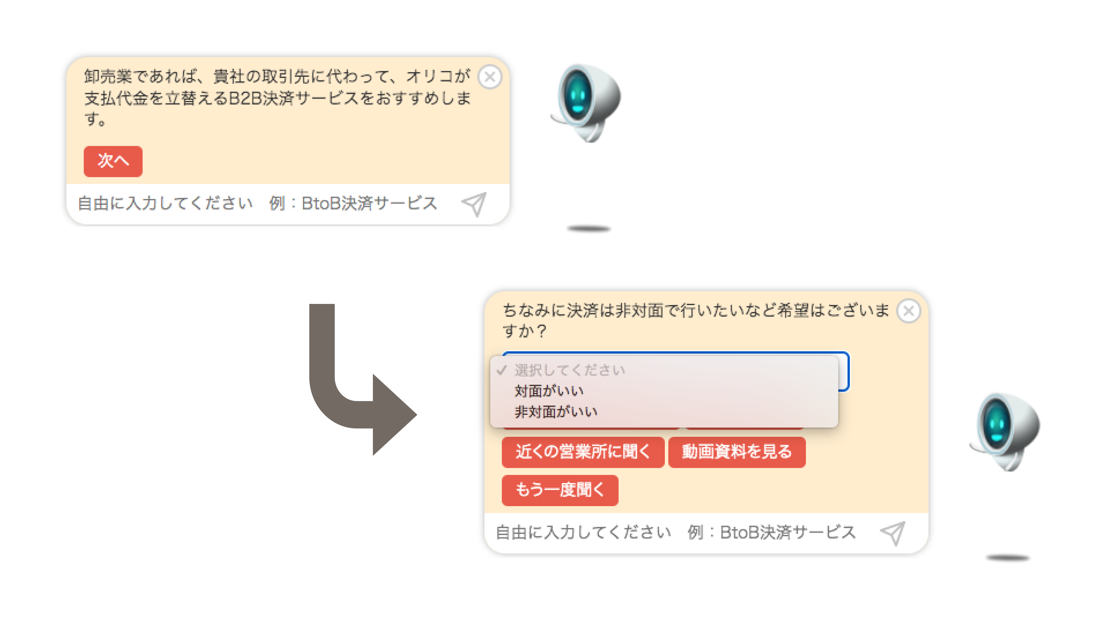 ・利用者の入力テキストに応じた、該当商材ページへの誘導