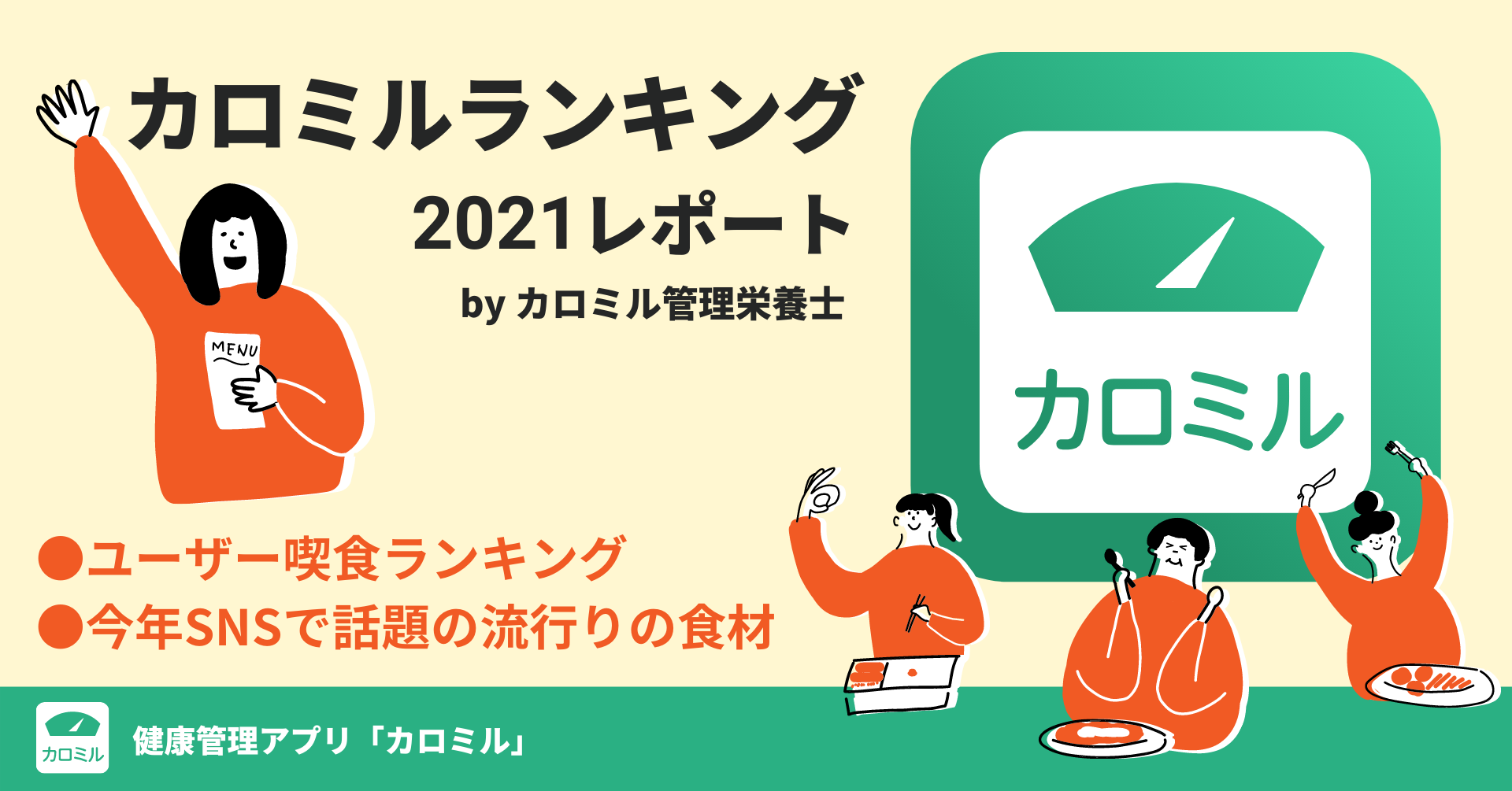 食事・運動・体重管理アプリケーション(以下アプリ)「カロミル」の開発・提供をするライフログテクノロジー株式会社(東京都中央区、代表取締役:棚橋繁行)は、2021年の1月1日〜12月24日の間、アプリユーザーがどのようなものを喫食していたかをまとめたランキングデータを発表いたしました。