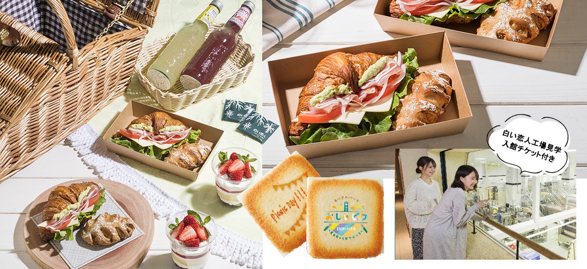 白い恋人パーク内でおしゃれにピクニックを楽しむ「おしゃピクセット」を販売。「おしゃピクセット」には、白い恋人パークで焼いたパンを使ったサンドイッチやISHIYAスイーツのほか、写真映えするアイテムを用意。白い恋人パークの彩り豊かな花や手稲山をバックに、ピクニックを満喫できます。そのほかにも、ピクニックをイメージしたスイーツやドリンクを販売。ローズが華やぐ白い恋人パークで、家族や友人、恋人と、おしゃピク(おしゃれにピクニック)をしませんか?
