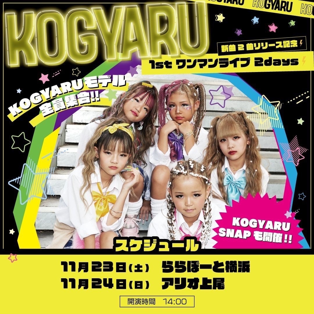 小学生ギャル集団KOGYARUが、11月に新曲をリリースすることが決定しました。また、新曲のリリースを記念し、11月23日(土)と24日(日)の2日間、KOGYARU初のワンマンライブが開催されます。