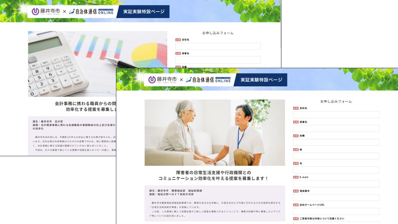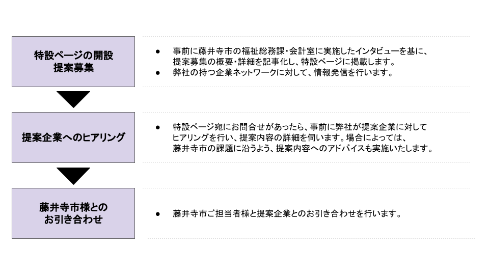 福祉分野・会計事務分野に関する藤井寺市の課題を紹介した特設ページを開設し、民間企業からの提案を募集