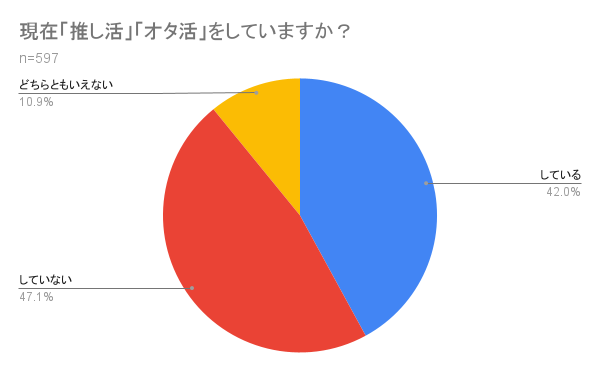 「『推し活』『オタ活』をしているか?」の問いに、全体の42%が「している」と回答。