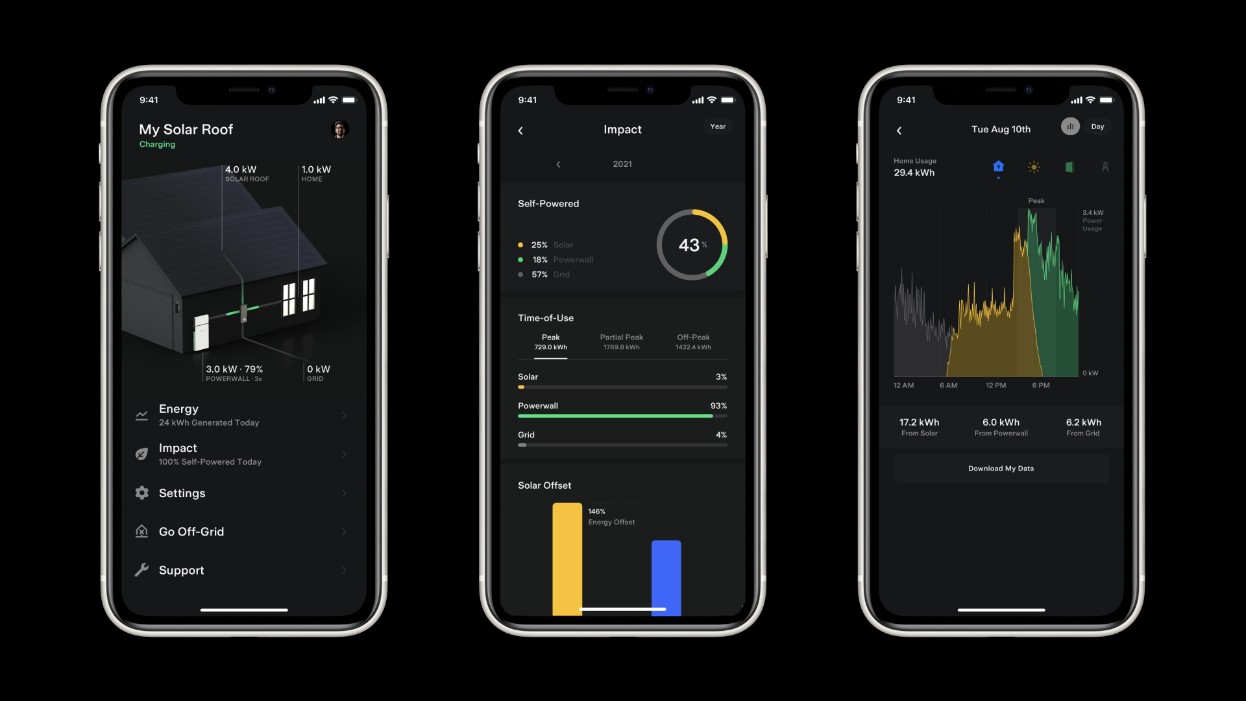 デザインは白を基調としたシンプルなもので外壁になじみやすく、スタイリッシュな空間を演出できる点も魅力のひとつ。住宅の外観にこだわりがある方でも取り入れやすいデザインとなっています。さらに、モニタリング機能で一年を通して24時間、テスラPowerwallをコントロールできる点も大きな特徴です。電気の使用状況や蓄電状況を日・週・月ごと等で確認できるため、家庭における電気使用状況をリアルタイムで把握できます。