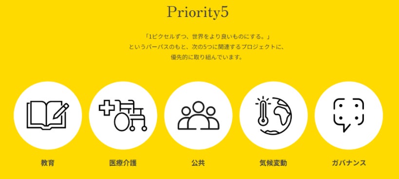 私たちのMissionは「革新の触媒」であり、Purposeは「1ピクセルずつ、世界をより良いものにする。」ことです。社会課題解決を追求し、新たなビジネスやイノベーション創出に貢献します。