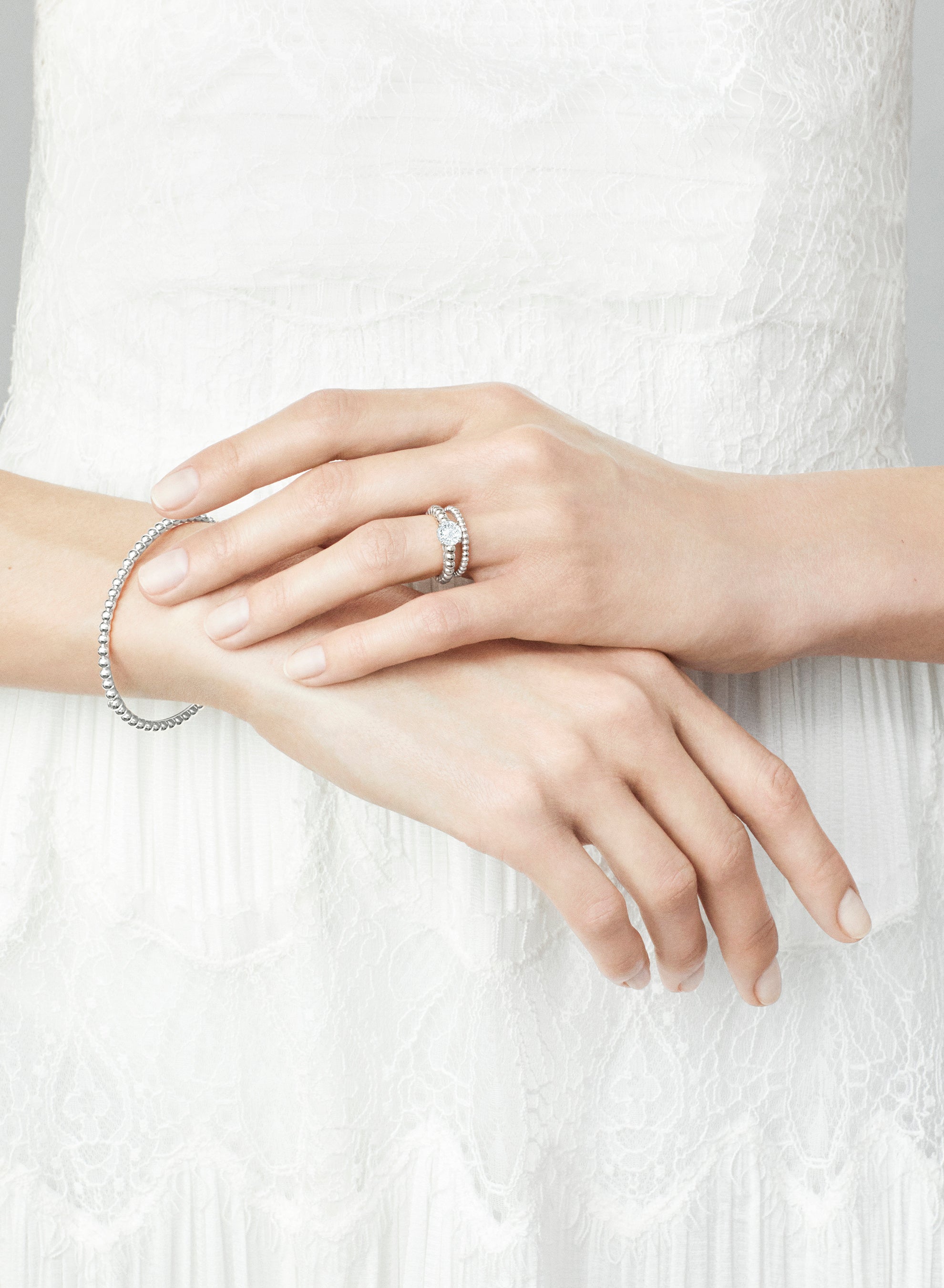 ヴァン クリーフ&アーペルのエンゲージメントリングは自然やクチュール、イマジネーションや愛の言葉から着想を得ており、すべての作品に詩情とエレガンスが息づいています。メゾン創設者の愛の物語に深く寄り添う「ロマンス エタニティ リング」や、研磨を施したプラチナに優美で繊細なカリグラフィ文字で刻印されたメゾンの名前が印象的な「タンドルモン シニアチュール マリッジリング」など豊富なセレクションが並びます。