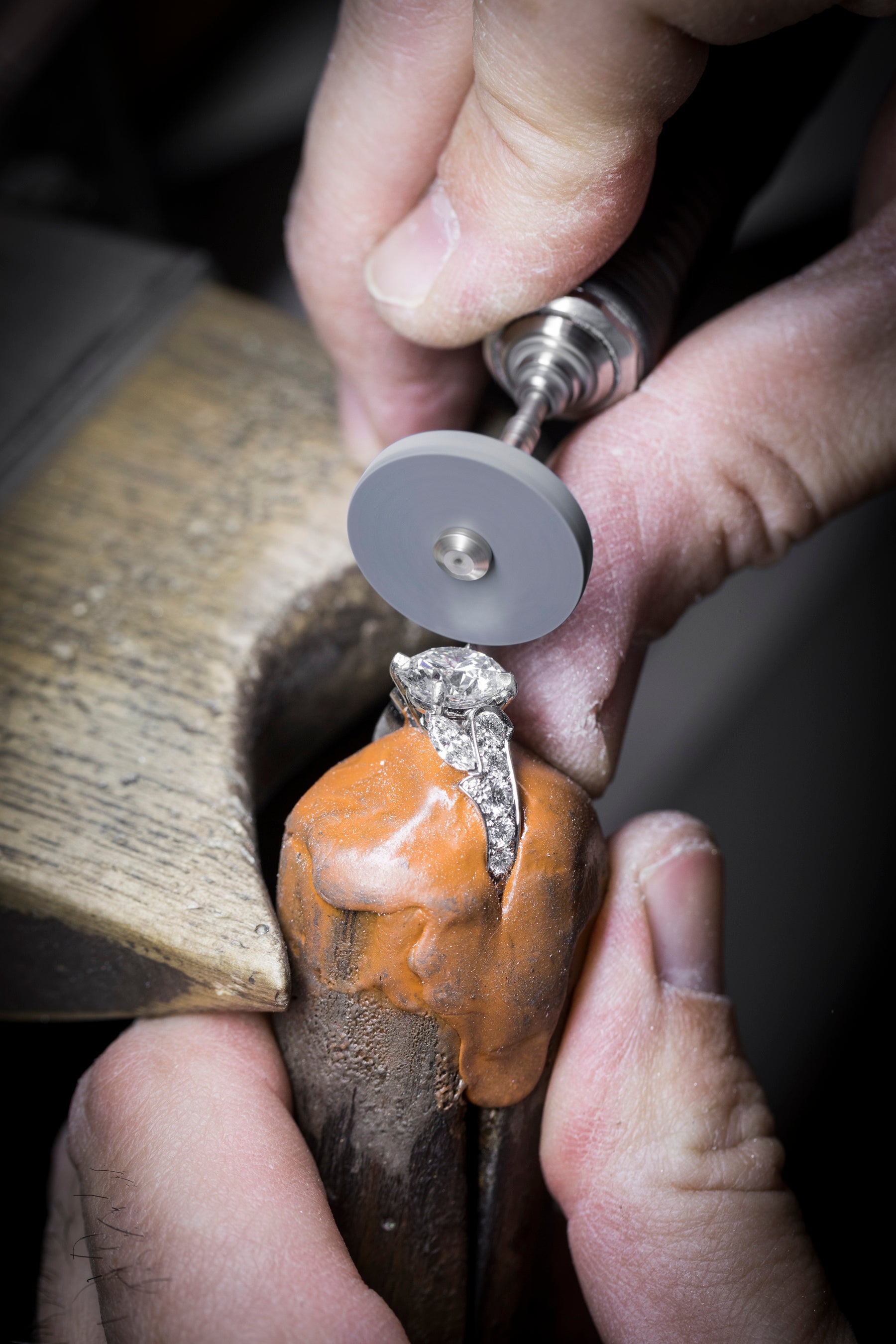 また、ヴァン クリーフ&アーペル専属の宝石鑑定士は世界にひとつだけの特別な貴石を用いてユニーク ソリティア リングを制作します。クラリティ(透明度)は FL~VVS2、カラーはD、E、のみという最も厳格な基準で最高品質のダイヤモンドのみを選び抜き、作品に独特な輝きを与えます。すべてのソリティア、マリッジリングのひとつひとつに宝飾職人やセッティング職人、研磨職人らのさまざまな技が集結し、ヴァン クリーフ&アーペルが描き出す魅惑あふれる世界と結びつくことで、世界にひとつの輝きを宿します。