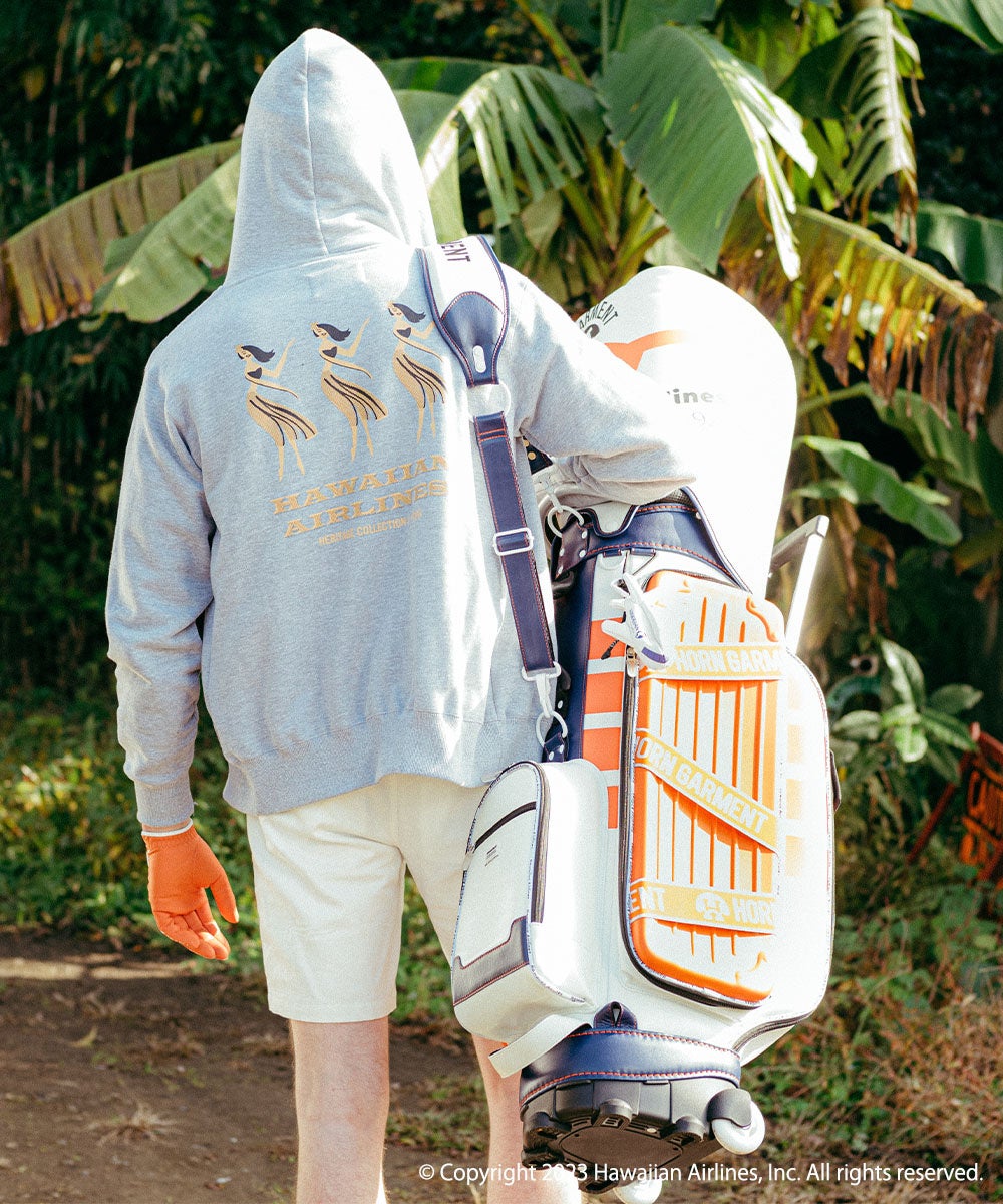 アパレルコレクションは、「ハワイアン航空」で1940~1970年代に使用されていたロゴを使って当時のブランディングとスタイルをモチーフにした、吸水速乾性とストレッチ性を備えたポロシャツやカットソーやショーツ、カラーごとに異なるHAWAIIAN AIRLINESのメッセージが楽しいグラフィックが特徴のグラフィックパーカーなど、リゾートゴルフや旅行にも最適なメンズ・レディースアイテムを順次展開します。