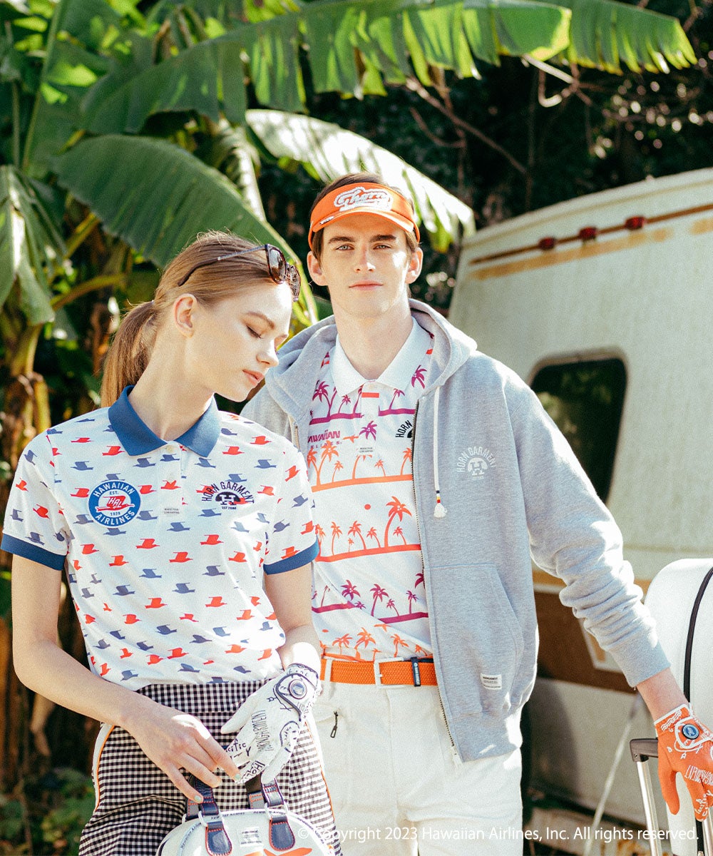”楽しさを着るエクスペリエンスアパレル”をコンセプトにユニークなラインナップを展開する「HORN GARMENT」と、ハワイで最大かつ最も歴史の長い航空会社「ハワイアン航空」の共同企画第2弾は、23SSシーズンテーマの「BACK TO LIFE」をモチーフに、今年もオンザグリーンからタウンまで、様々なシーンで楽しめるアイテムが揃ったカプセルコレクションを展開。