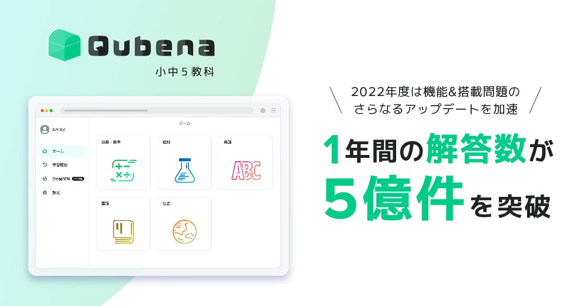 AI型教材「Qubena (キュビナ) 」 2021年4月の小中5教科版リリース開始から1年間の解答数が5億件を突破