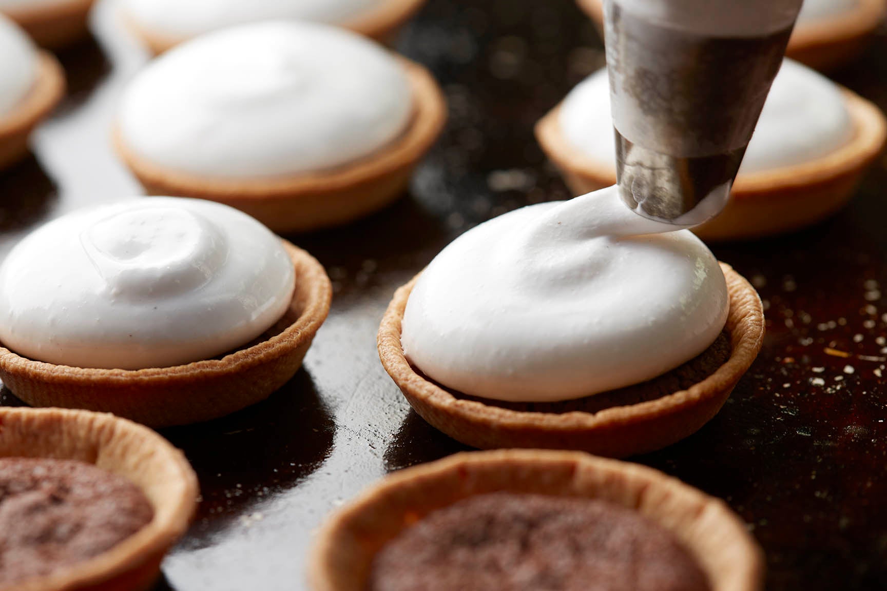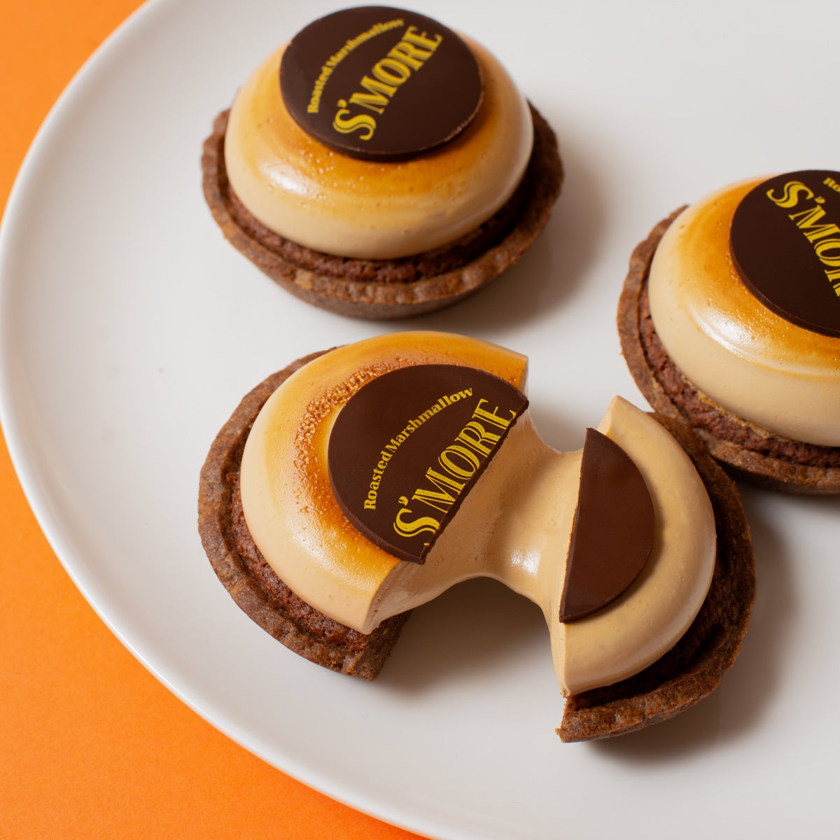 スモアはアメリカやカナダで昔から愛されている、焼いたマシュマロをチョコとグラハムクラッカーで挟んで食べる、伝統的なアウトドアスイーツ。子供がスモアを食べた後に、つい「Give me Some More!」(もう一つちょうだい!)と言ってしまう美味しさがネーミングとなりました。このスモアをベースに両社でプロジェクトを立ち上げて開発したスイーツが「焼マシュマロ・タルト スモア」です。