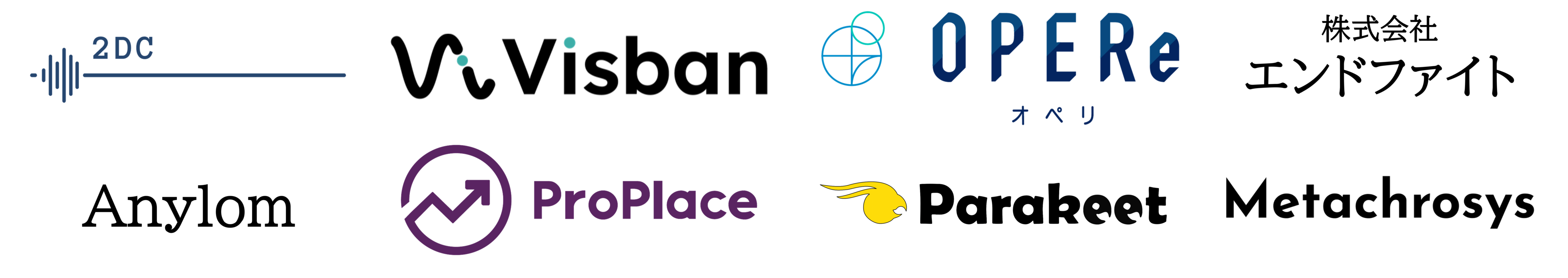 今回の採択先は、株式会社2DC、株式会社Visban、株式会社OPERe、株式会社エンドファイト、Anylom、ProPlace、Parakeet株式会社、株式会社メタクロシス、です。