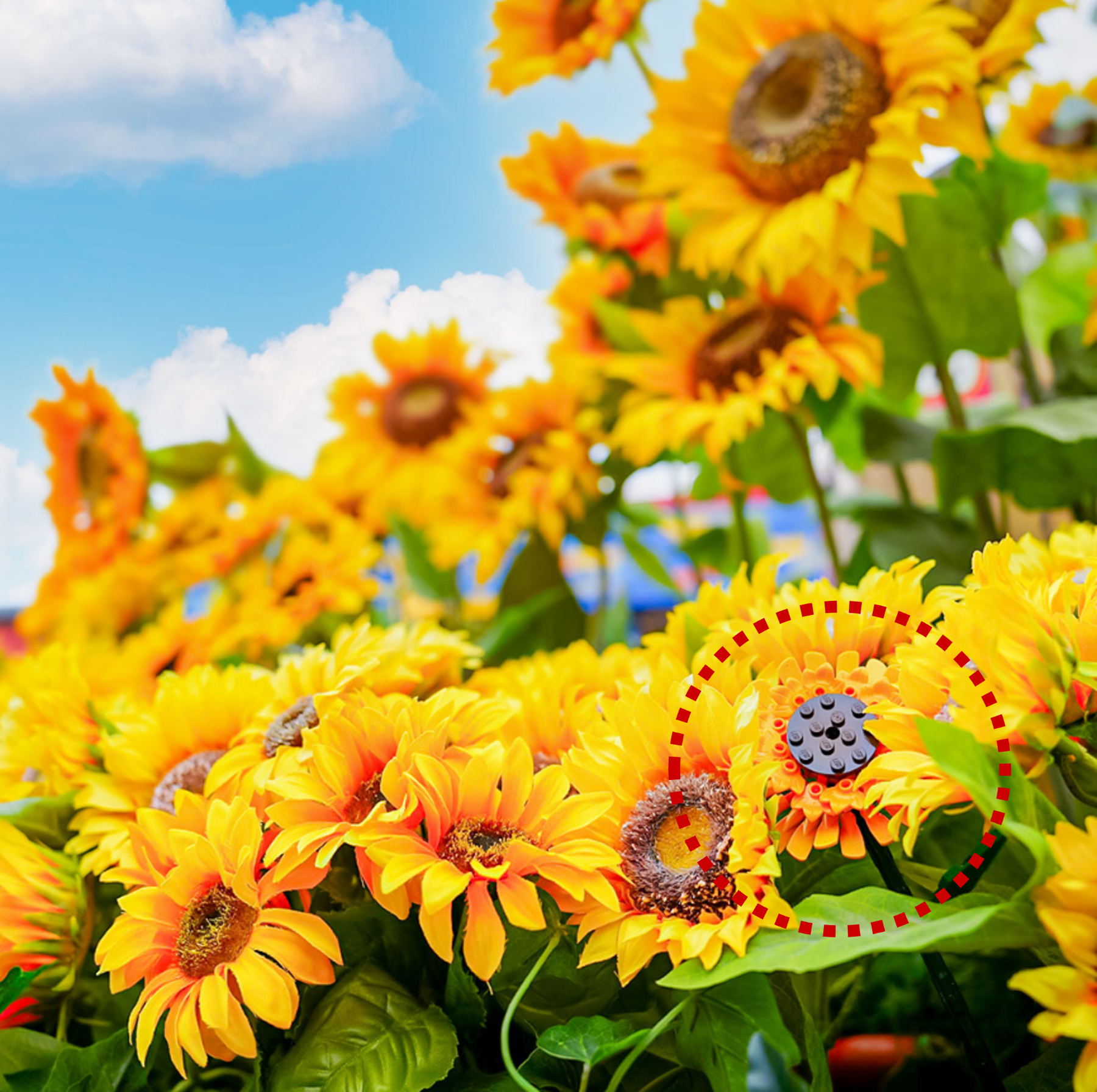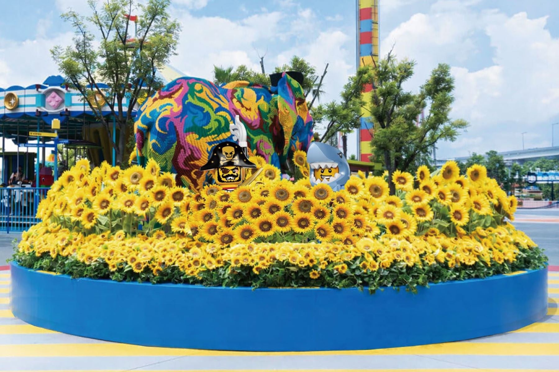 エントランスを抜けると、目の前には夏の思い出を彩るたくさんの「ひまわり」がお出迎え。そのひまわりの中にはレゴⓇ ブロックで作られた特別なひまわりが隠れています。