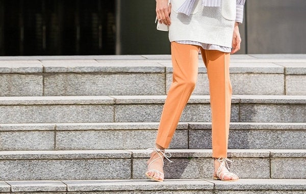 心踊るブルーグリーンのパンツは足取りも軽やかに。