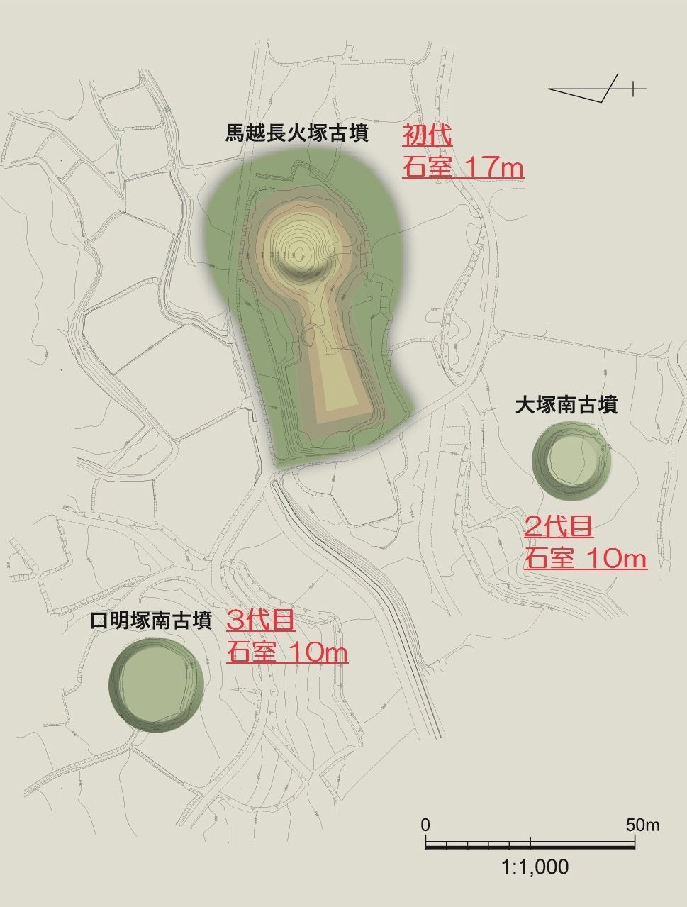 一般的には、新しいものになるにつれ、古墳の規模が小さくなっていくものですが、今回の調査で確認された石室は、大塚南古墳と全長は近いものの横幅などは大きく、長期間に渡り権力が保たれていたことがうかがえます。