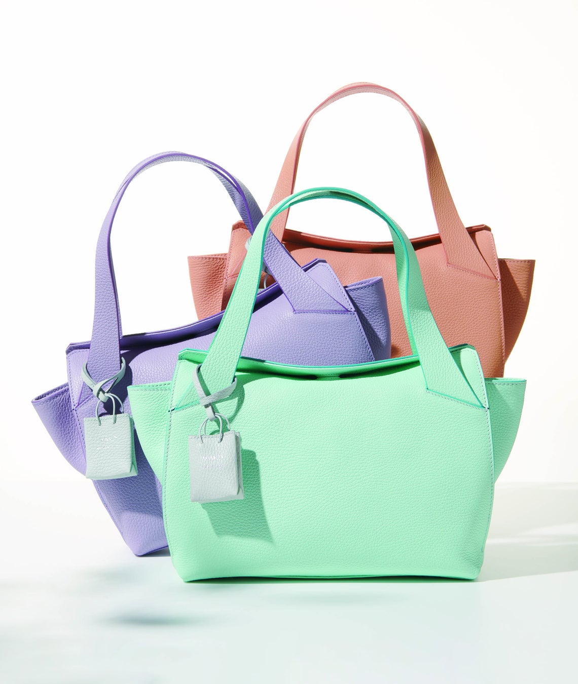 各 税込¥132,000(牛革、17×28×マチ12cm、スカイブルー、ラベンダー、ピンク、ほかに黒、紺、ライトグレー、アイボリー、オーク、黄緑、本館3階)