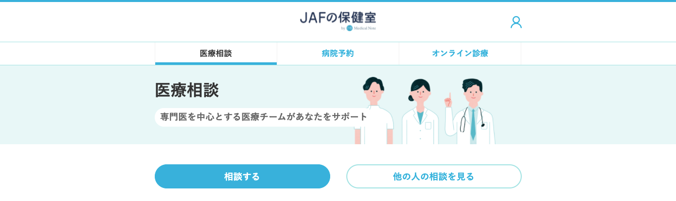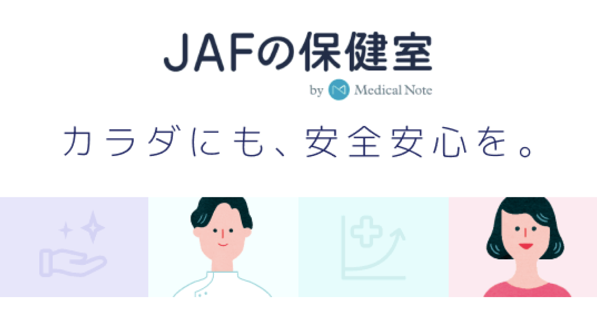 株式会社メディカルノート(東京都港区、代表取締役CEO:梅田 裕真、代表取締役:井上 祥、以下、メディカルノート)は、この度、JAF(一般社団法人日本自動車連盟 会長 藤井一裕)とタッグを組み、医療相談や病院予約などをサポートするJAF会員向けオンライン医療サービス「JAFの保健室」の提供を開始いたしました。