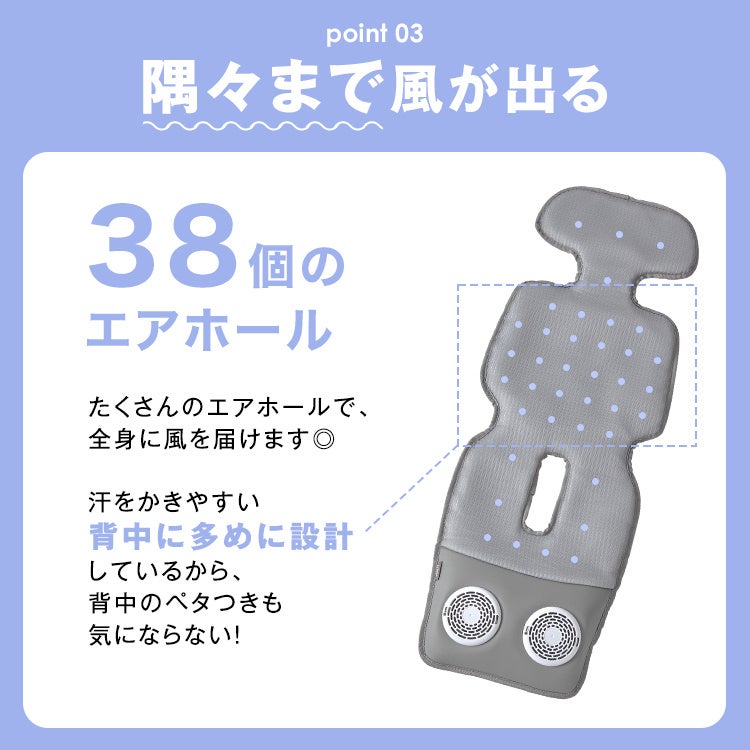 ※4 2025年2月 当社調べ(日本国内における「ベビーカー用クールファンシートにおける空気孔数」として)