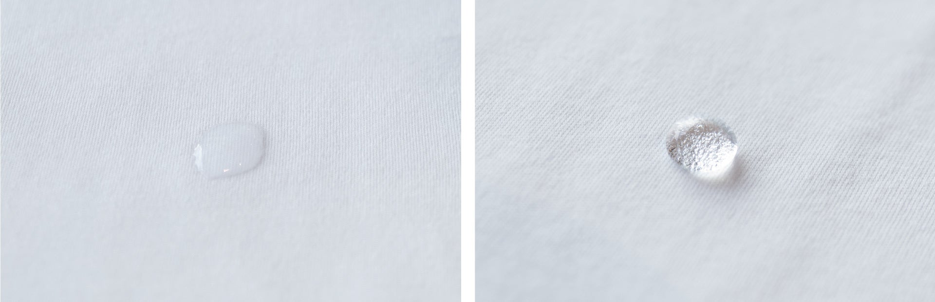 ※撥水効果を確認するため、綿100%の衣料に加工効果を施しています。