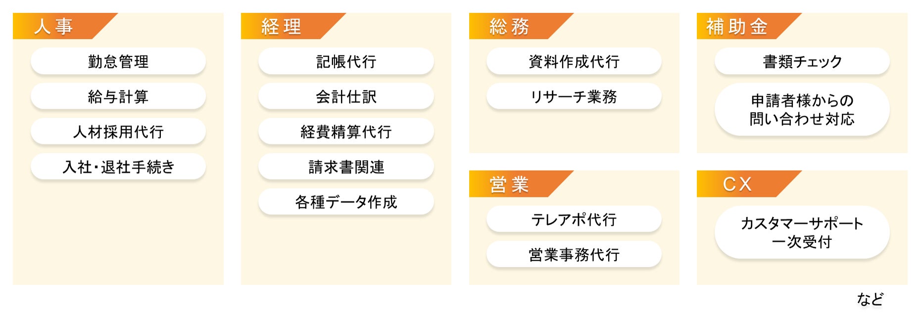 本サービスは、国内スタートアップ企業の事業拡大を支援するため、人事・経理・総務・営業など幅広い領域のノンコア業務等を代行する新サービスです。