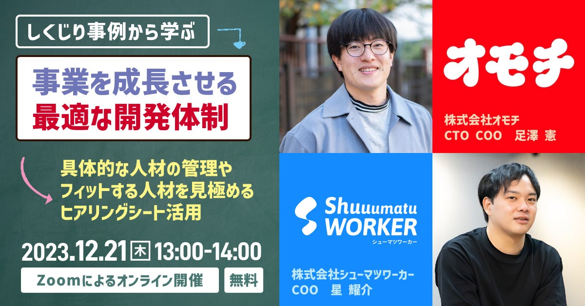 【開発組織の責任者必見!】”CTOのしくじり事例”と最適な開発体制をテーマにセミナーを開催!株式会社オモチ×シューマツワーカー
