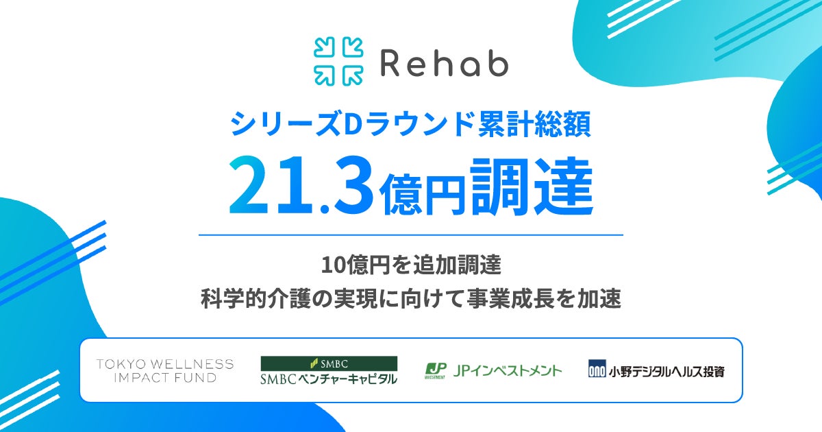 介護リハビリテックのRehab、シリーズDエクステンションラウンドにて10億円を追加調達、シリーズDの累計調達額は総額21.3億円に